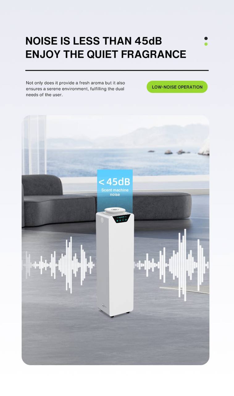 • Quiet & Comfortable Operation: Advanced acoustic designs ensure a whisper-quiet scenting process (less than 36dBA for personal models and less than 45dBA for commercial models).